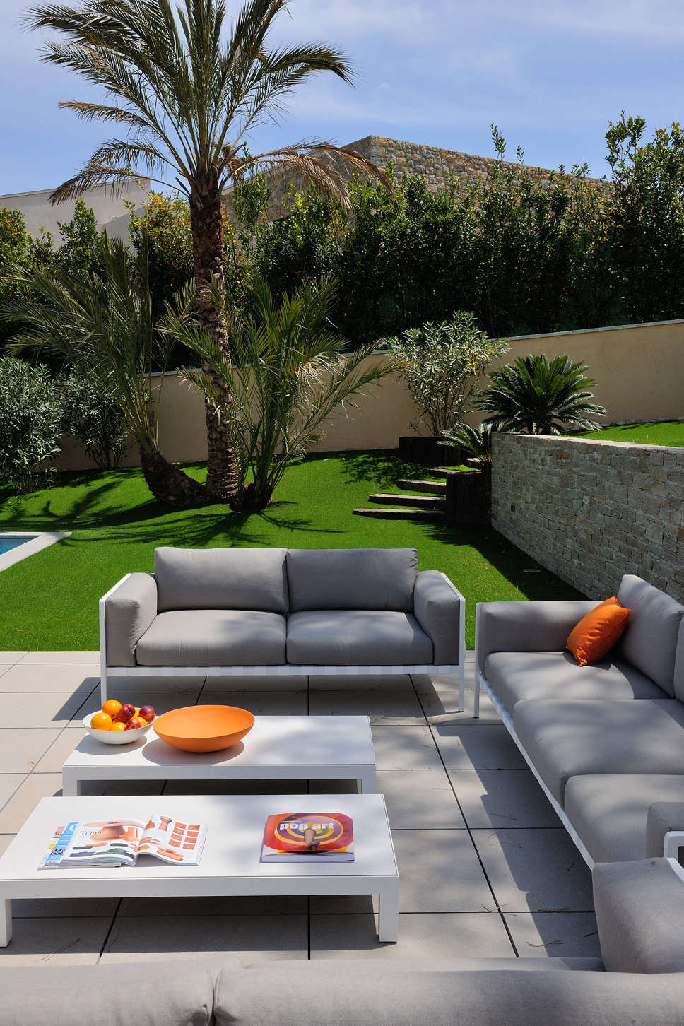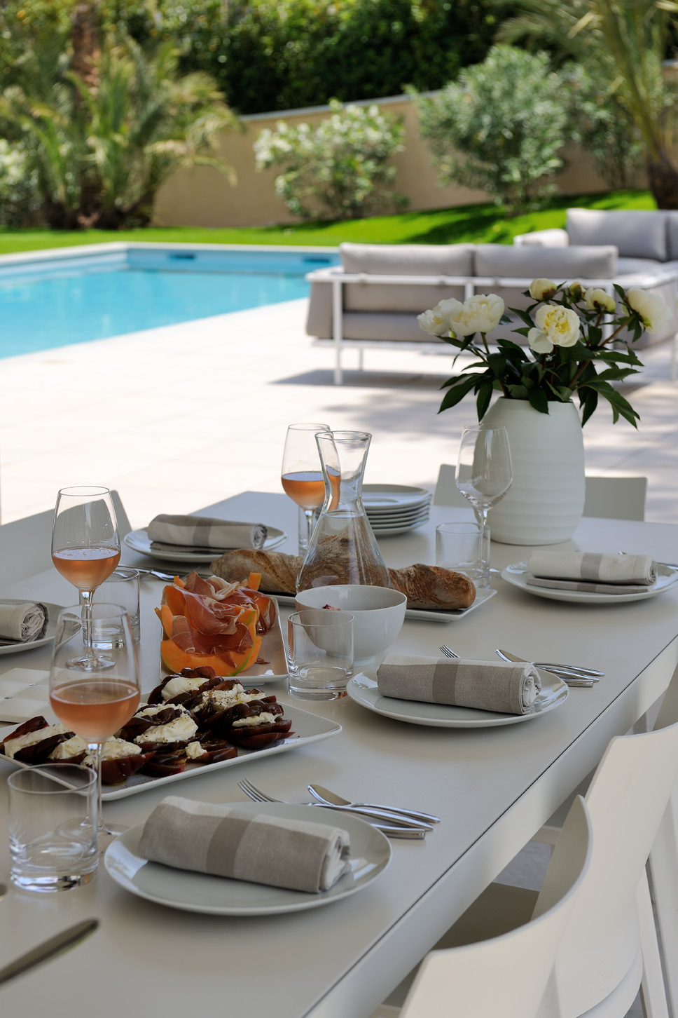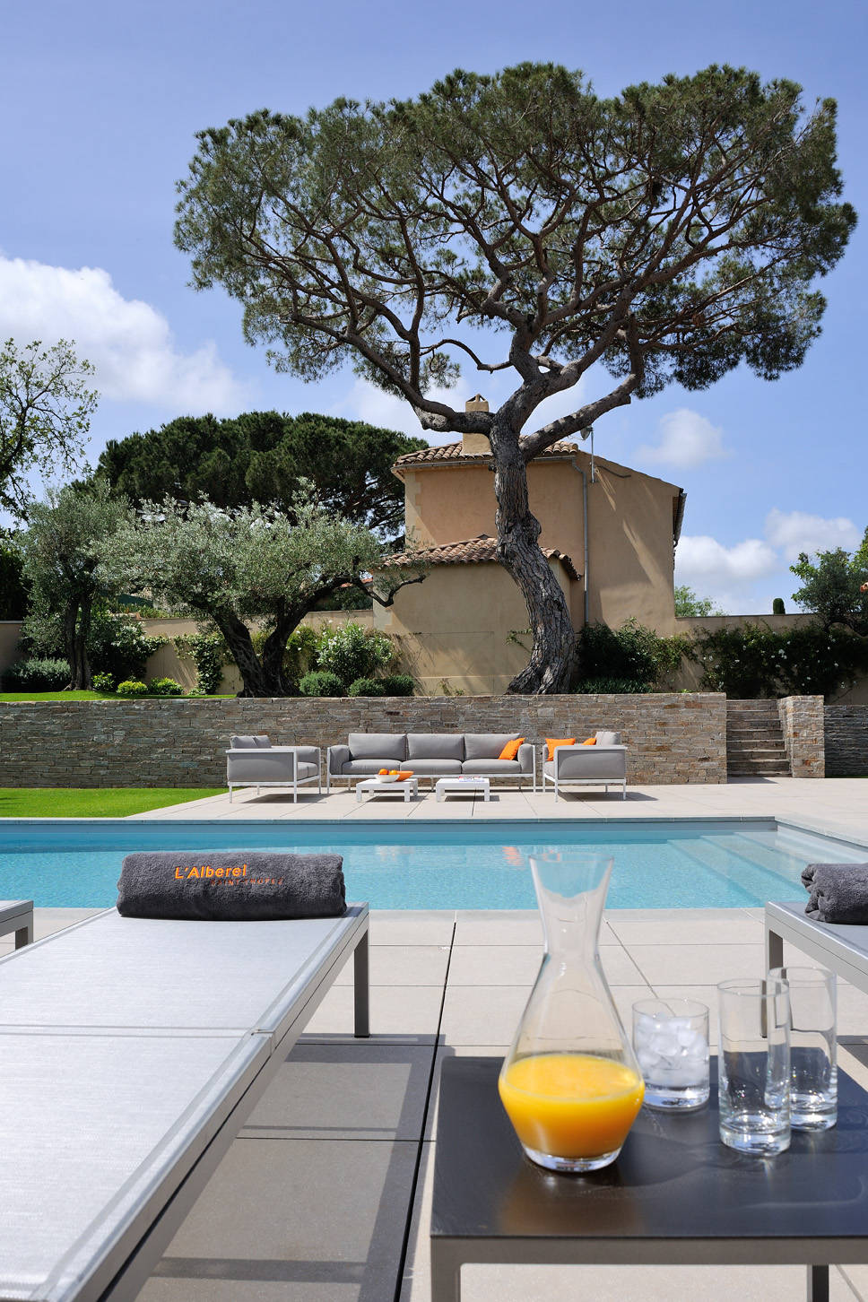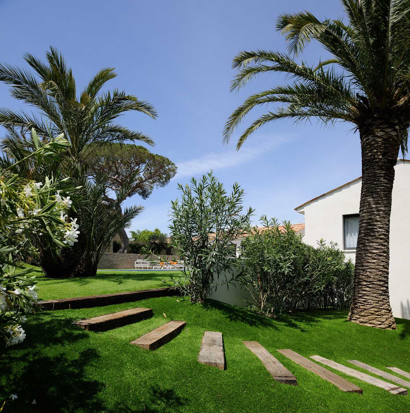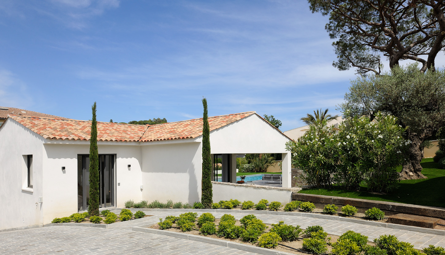 Beautiful contemporary 5 bedrooms villa a few steps away (200 m) from the center of Saint Tropez. 320 m2 on 1650 m2 perfectly maintained landscaped garden facing south.