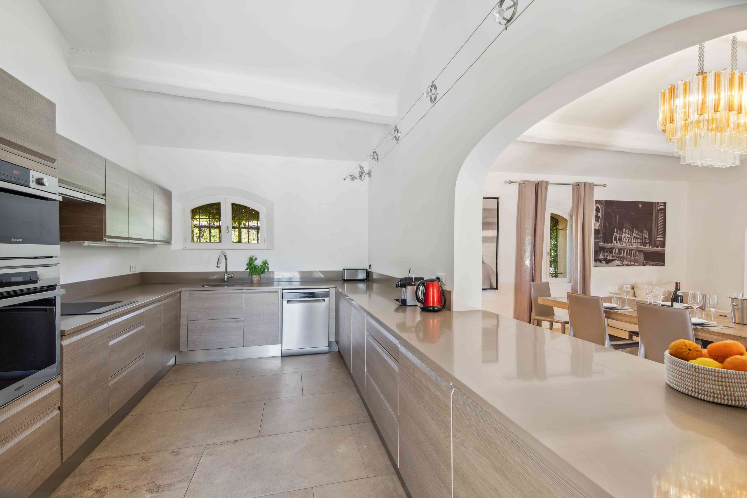 Spacious and contemporary interior design, and a mint very well maintained 3000 m2 garden. Bose and Sonos systems provide music in the villa and all around the pool area. 2 barbecues and a very nice pool house with a summer kitchen, a fully equipped bar with refrigerator and oven.