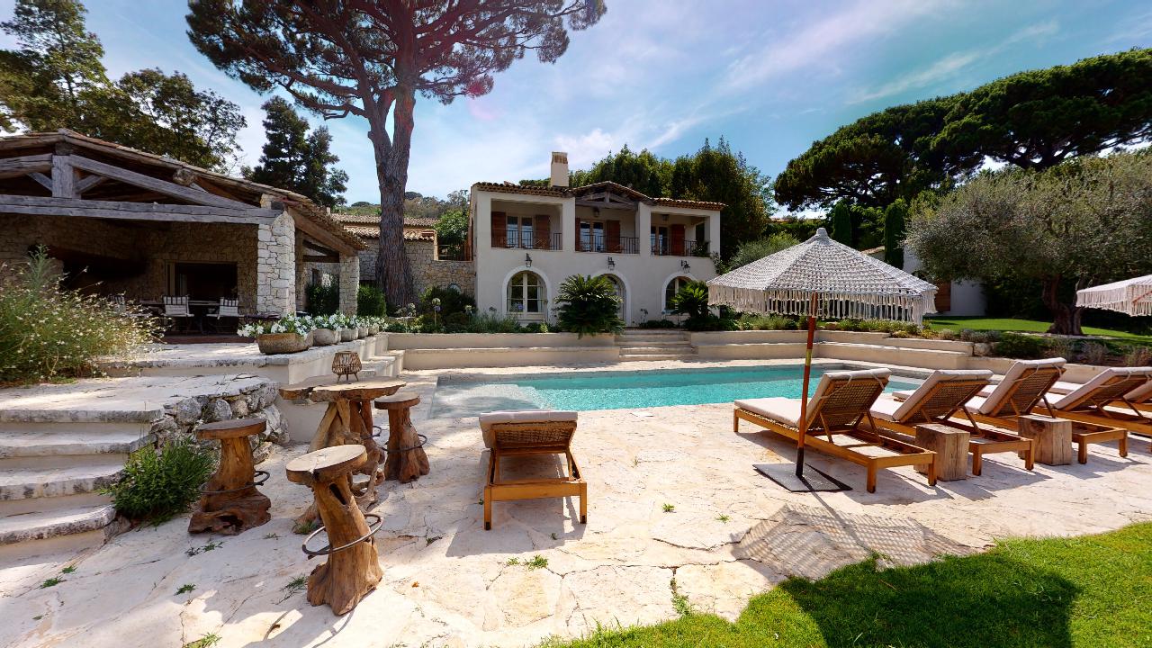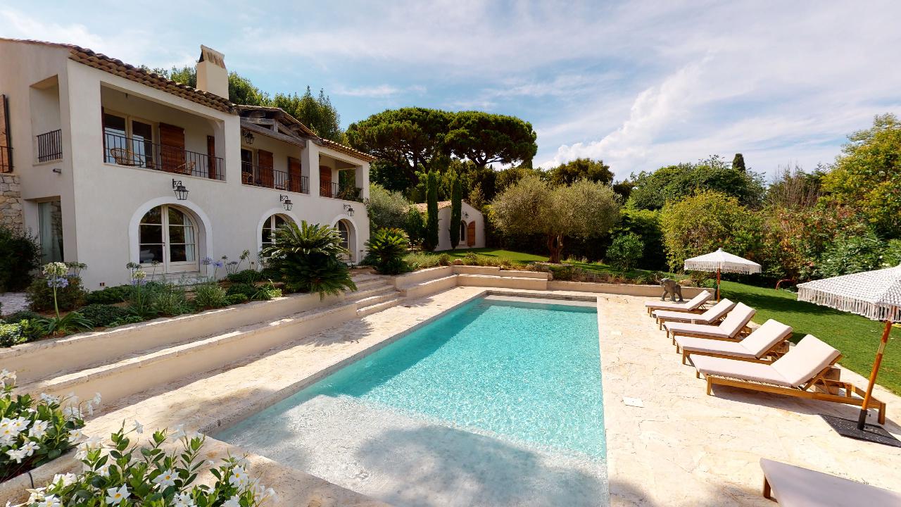 Only 5 minutes walk away from Place des Lices, this 6 bedroom villa has tremendous charm and offers open view on the Baie des Canoubiers. Beautiful interior design in a fully renovated provencal style