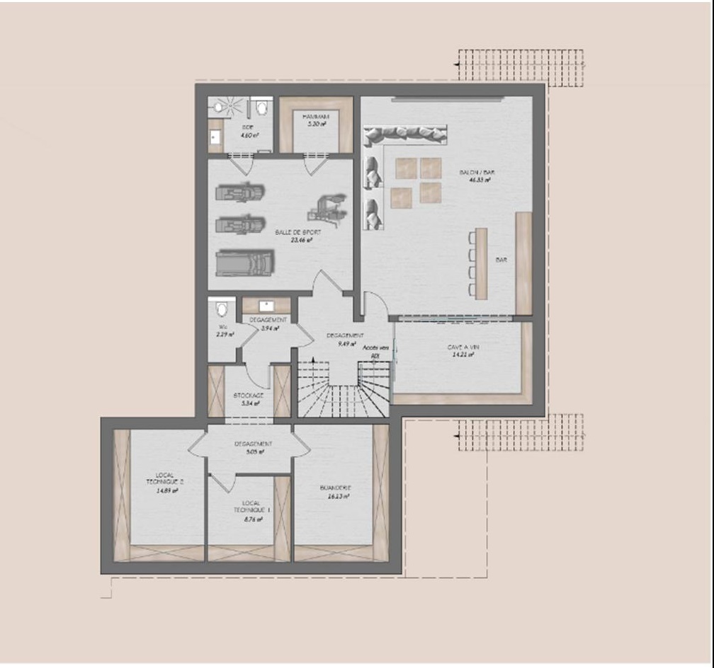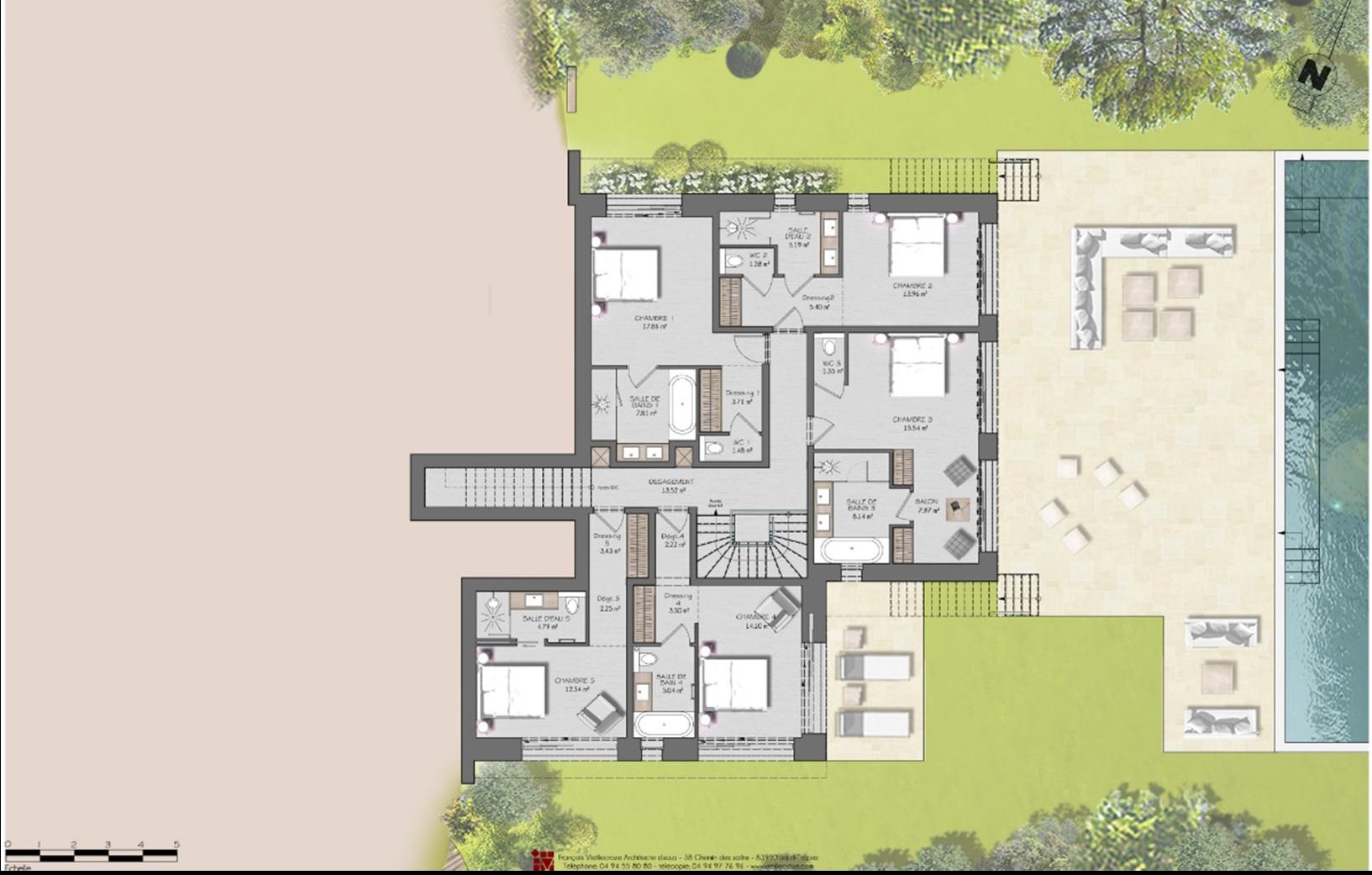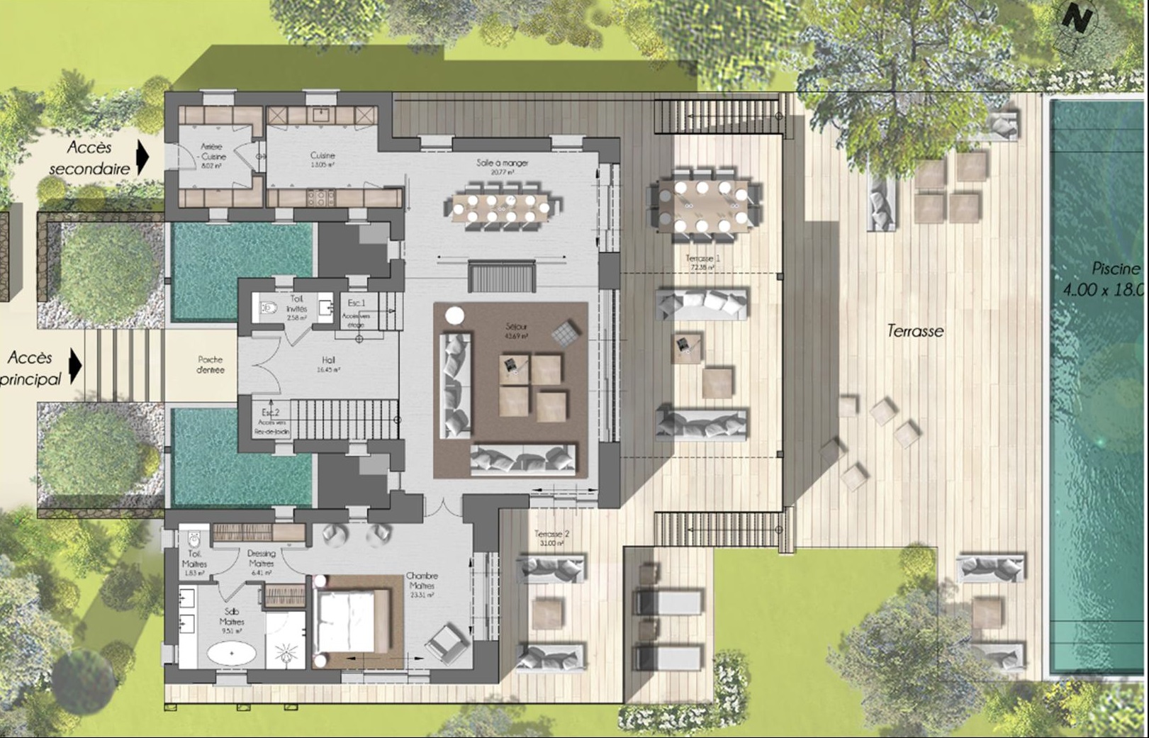 - Guest suite with bathroom (bathtub + shower) and toilet with access to the pool terrace