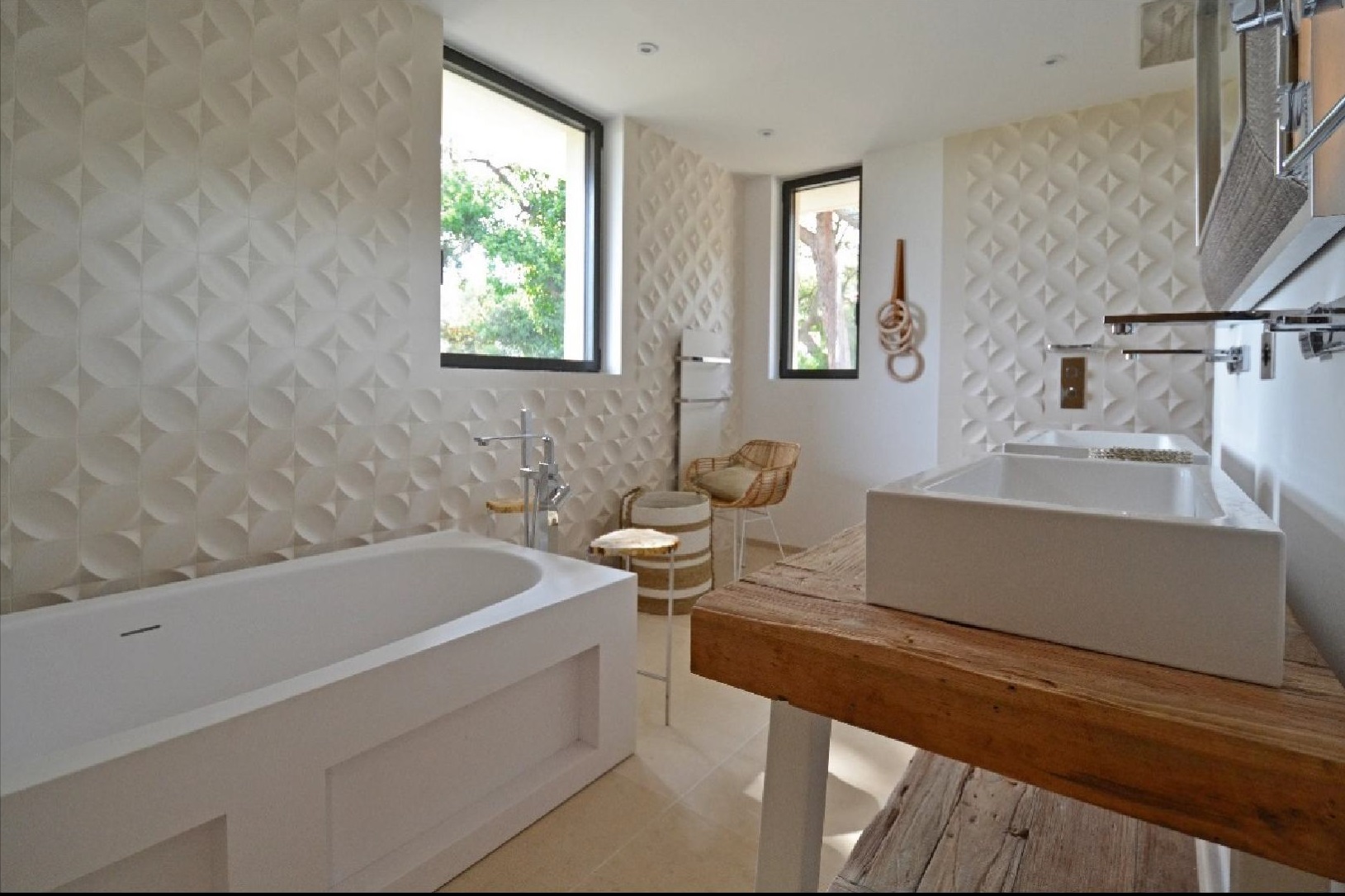 Nestled in the heart of a 4000 m2 pine forest, this contemporary property offers an exceptional, secluded view of the vineyards and the bay of Pampelonne.
