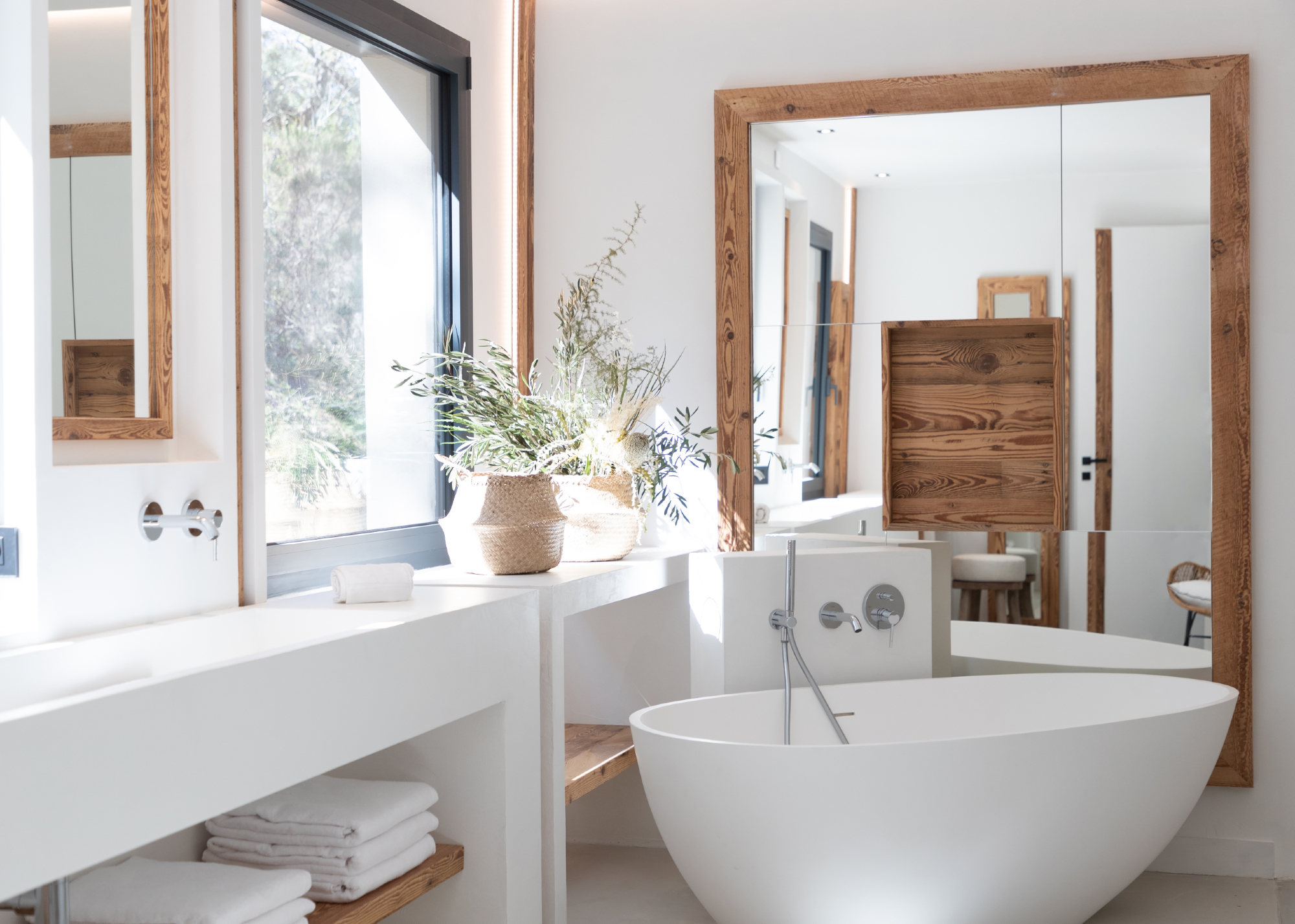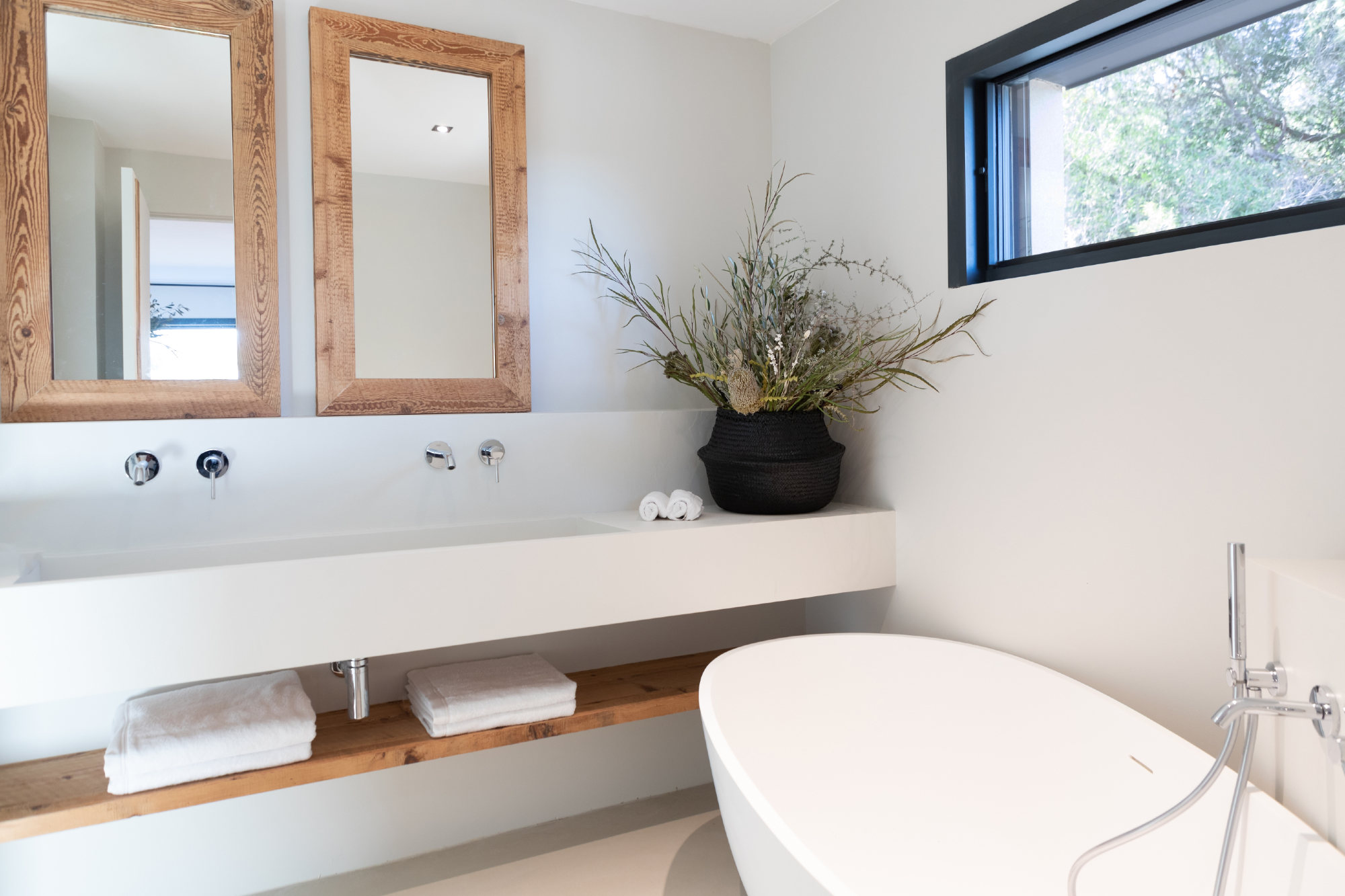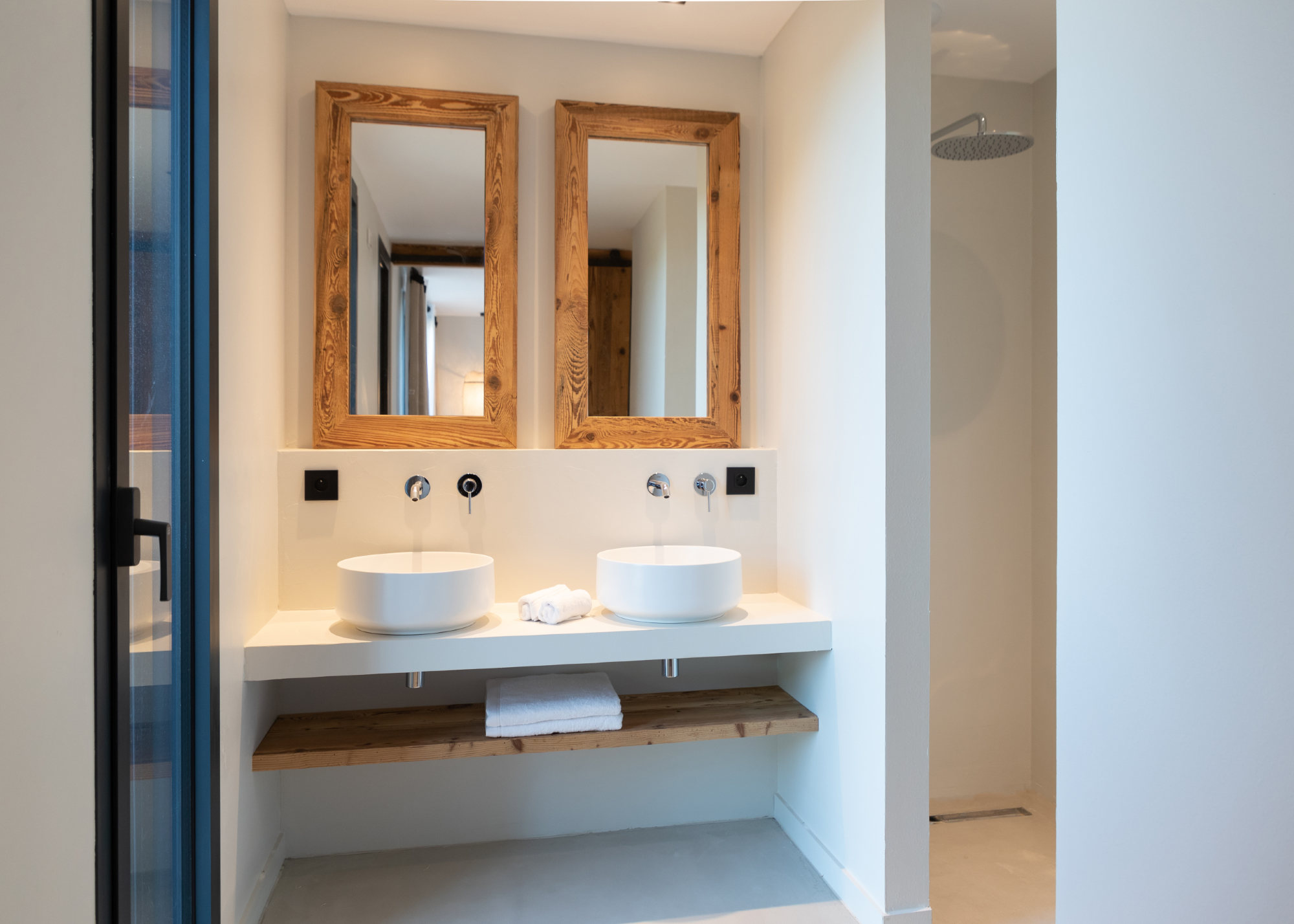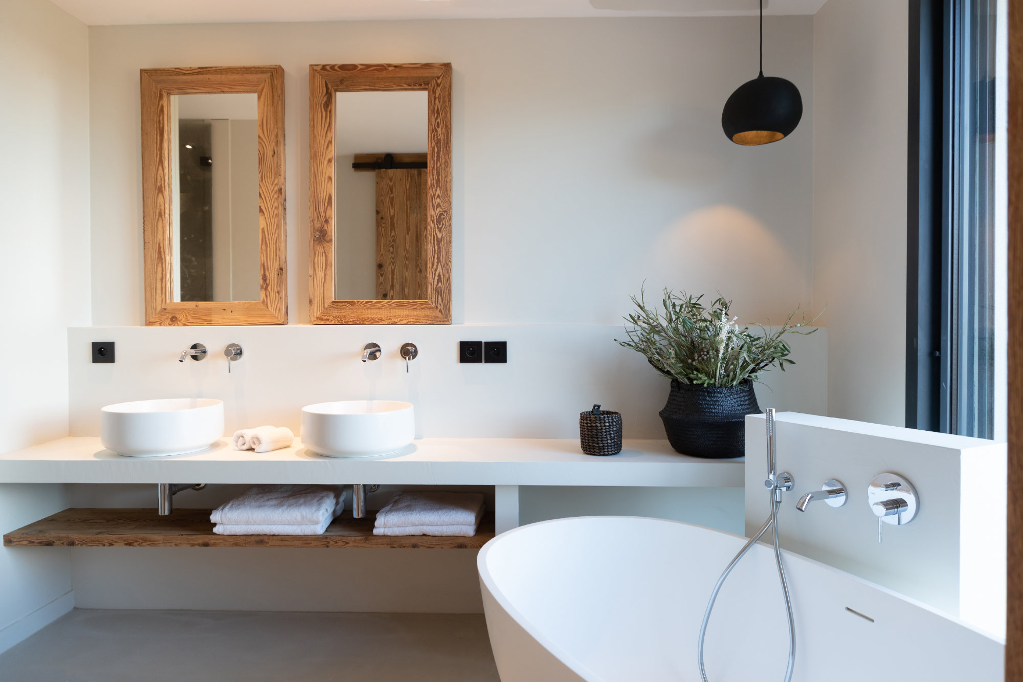 - 2 bedrooms, one with a 180 cm bed and one with 2×90 cm beds, each room with dressing, bathroom (shower + toilets)