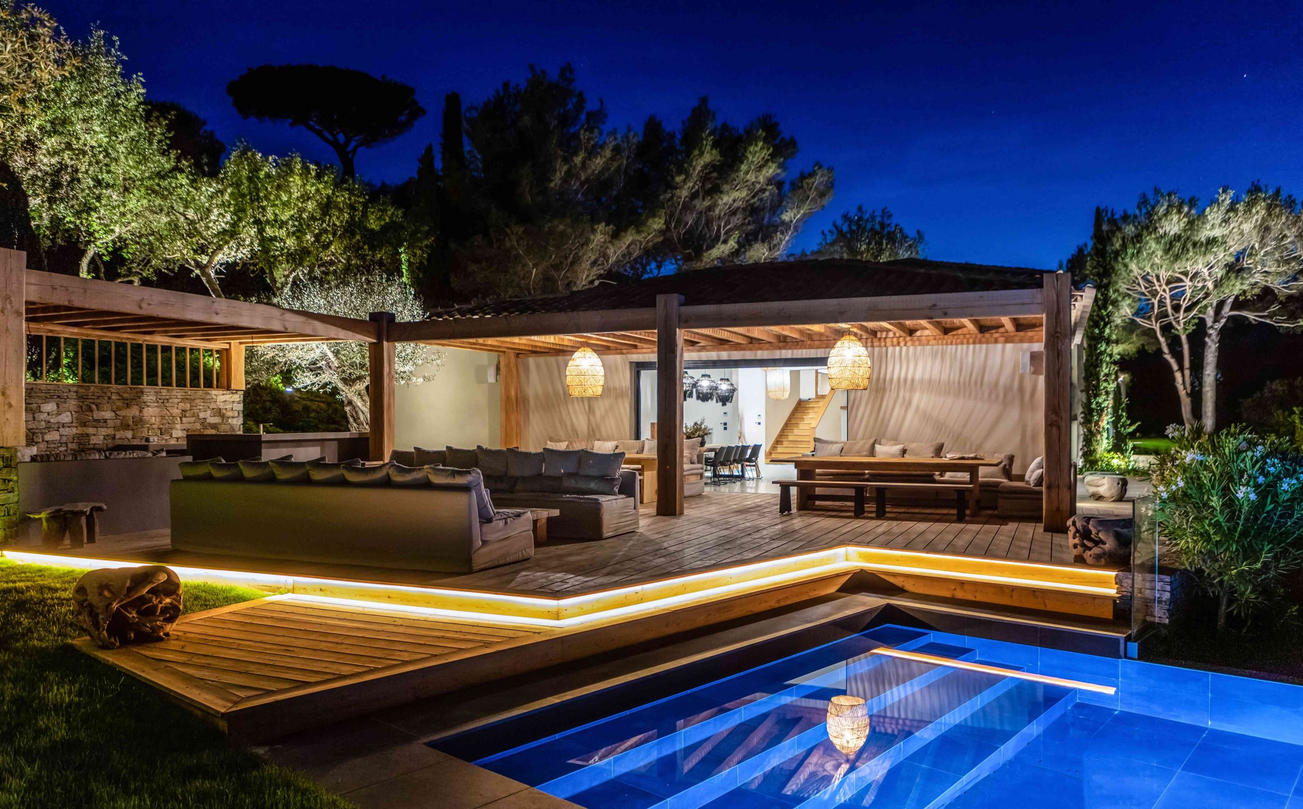 Magnificent villa in the Parcs de Saint-Tropez, with wide open views of the sea and the Gulf. Very beautiful setting, interior design and garden. A 520 m2 jewel with 9 bedrooms on 4400 m2 lanscape !